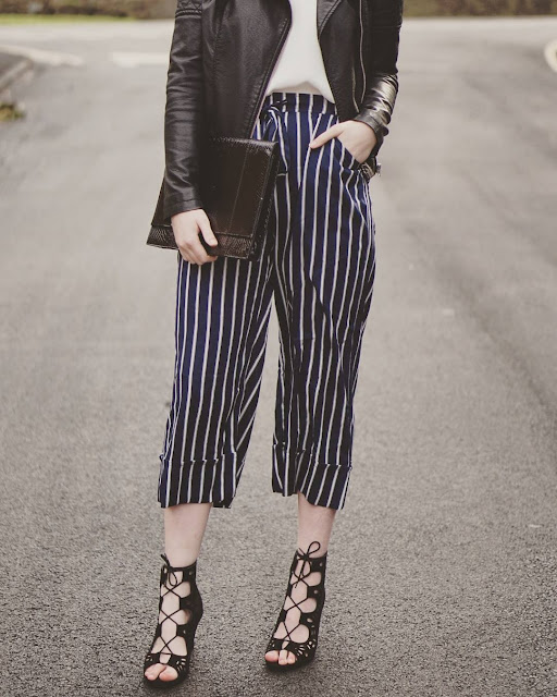 Okay, so I obviously went for the culottes. I was genuinely looking at purchasing these babies before I was sent them and you know I love a good pair of culottes. It doesn't matter what colour/pattern/shape; the cropped style of culottes mean they are flattering for nearly every figure. I've mentioned before that I always pair them with a heel. It just elongates the leg and makes them hang beautifully. This pair caught my eye straight away. I LOVE stripes, especially for summer (if we ever get it). They are a gorgeous crepe material, which really does skim over lumps and bumps and hangs over the legs perfectly. They feel much more expensive than the £15 that they cost.
